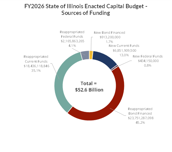 The State of Illinois (Illinois or the 'State') enacted a multi-year $52.6 billion FY2026 capital budget on June 16, 2025 The budget is a 1.5% decrease from FY2025 due to lower spending on new projects. The following are some capital budget highlights: